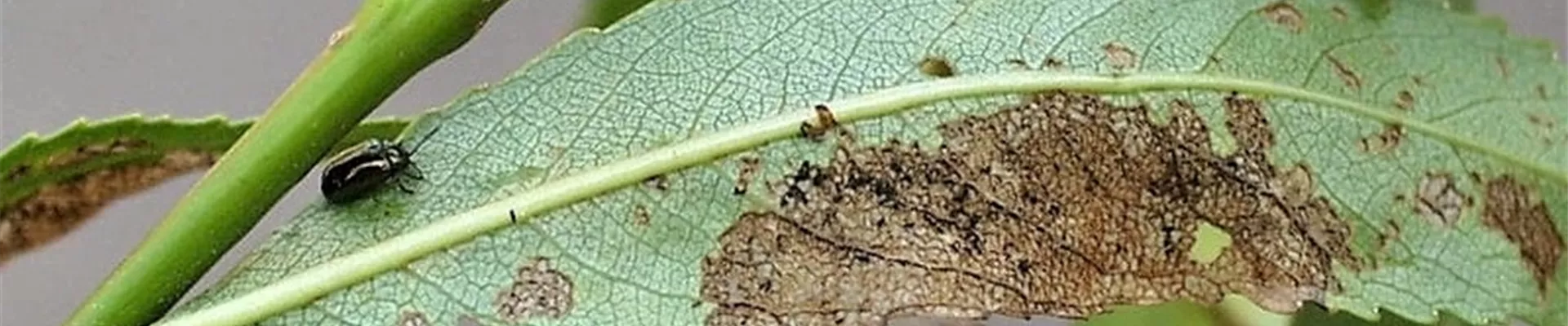 Häufig ist ist Kahlfraß zu beobachten. Im Laufe des Sommers erholen sich die Weiden i.d.R. sehr gut.