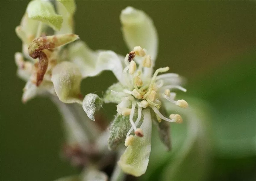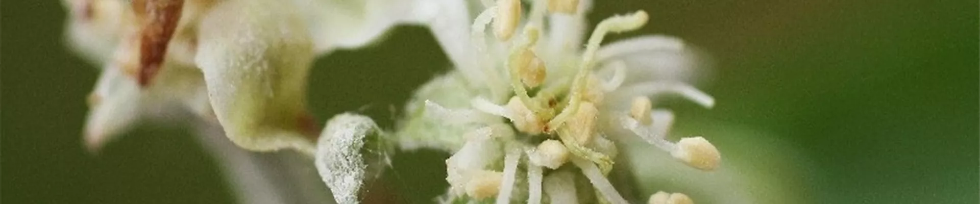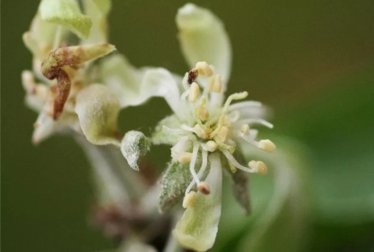 Im Mai und Juni sind die jungen Blätter und Triebe des Apfels, manchmal auch die der Quitte, ganz oder teilweise von einem weißen, mehlartigen Belag überzogen.