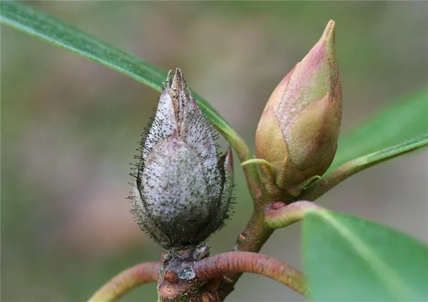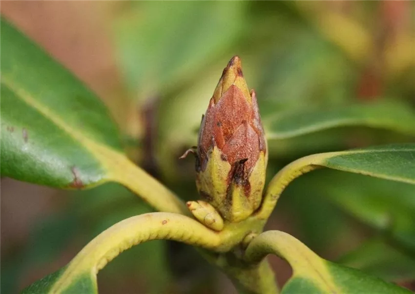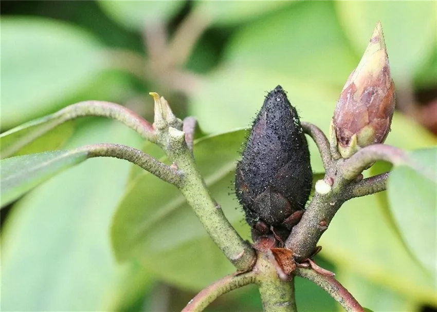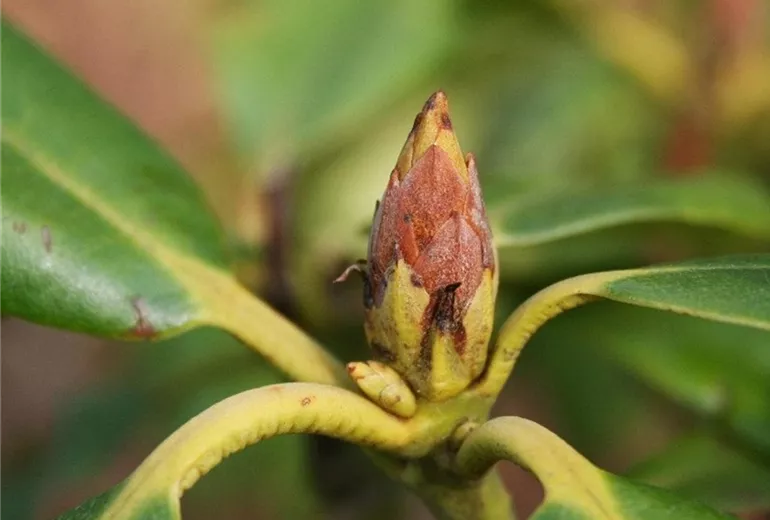 Das Knospensterben kann verschiedene Ursachen haben. Am häufigsten tritt aber ein Schadpilz (Pycnostysanus azaleae) auf, dessen Fruchtkörper man im Frühjahr in Form schwarzer Härchen erkennen kann. Es wird zwar seit vielen Jahren immer wieder behauptet, dass die Rhododendronzikade diesen Pilz überträgt, es fehlt aber immer noch der Nachweis für diese Vermutung.