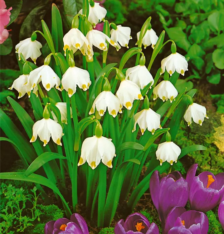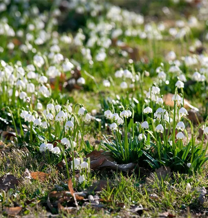 Die Frühlings-Knotenblume (Leucojum vernum) bringt ansehnliche, weiße Blüten von Februar bis März hervor. Bevorzugt wird ein durchlässiger Boden in sonniger bis halbschattiger Lage. Die aufrechte Staude erreicht gewöhnlich eine Höhe von 20 - 30 cm und wird bis zu 20 cm breit.