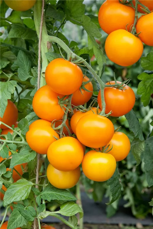Die Tomate (Solanum lycopersicum) bildet Früchte, die aromatisch schmecken und bereits ab Juli geerntet werden können. Für das optimale Wachstum der Tomate werden ein sonniger Standort und durchlässiger, nährstoffreicher Boden benötigt.