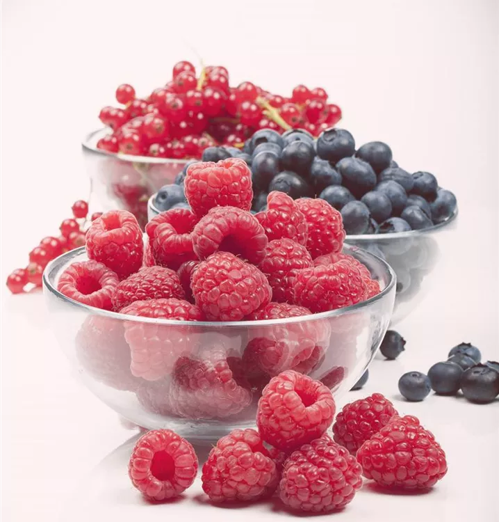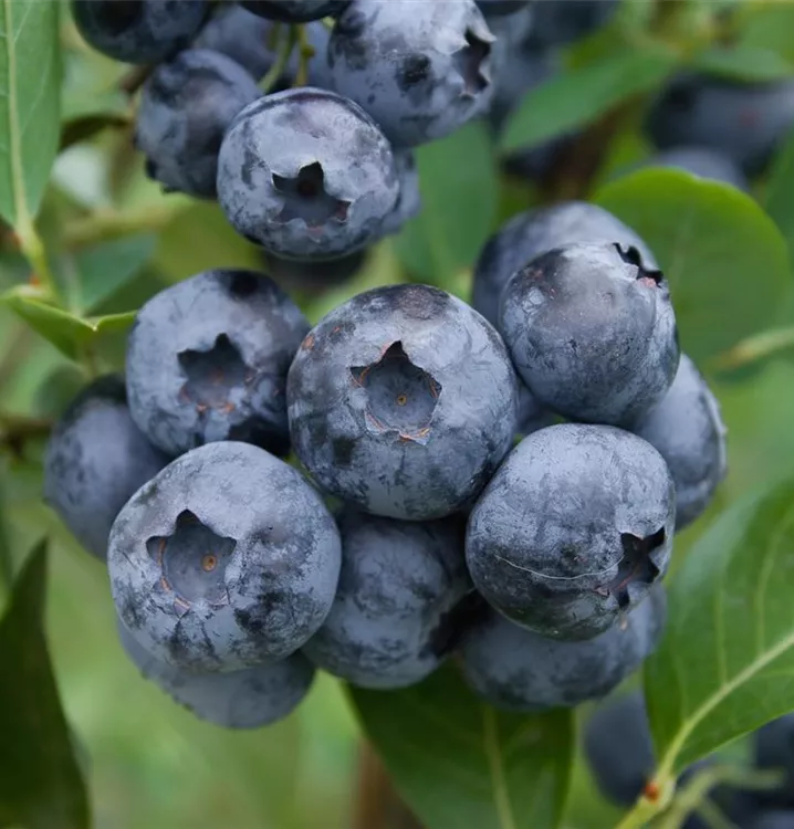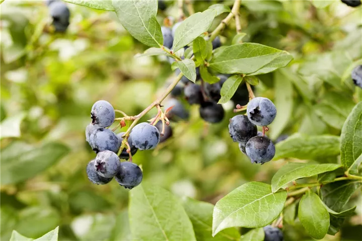 Die Amerikanische Heidelbeere (Vaccinium corymbosum) bildet blaue Beeren. Diese sind süß-säuerlich im Geschmack. Für eine ertragreiche Ernte ab Juli schaffen humoser, sandiger, feuchter bis nasser Boden und ein sonniger bis halbschattiger Standort optimale Bedingungen. Auch ihre hellrosafarbenen Blüten sind eine schöne Erscheinung.