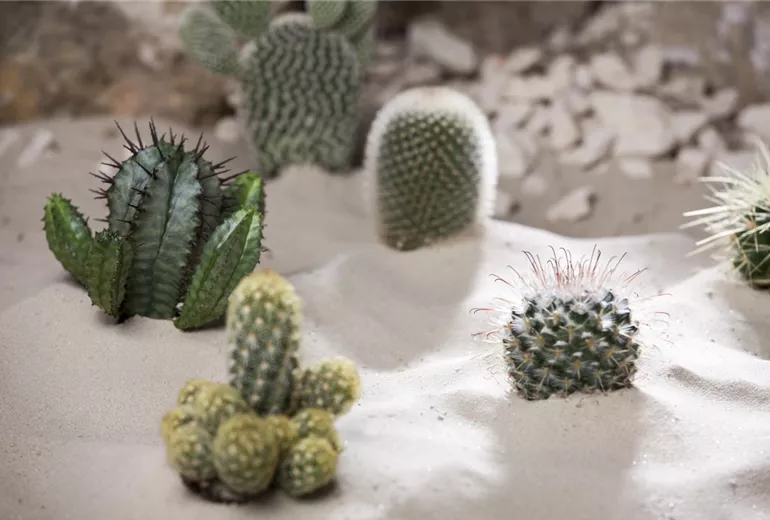 Auch wenn Kakteen sehr genügsam sind, brauchen sie dennoch Dünger. Düngen Sie ab März alle 14 Tage mit einem Kakteendünger. Ab Juli reduzieren Sie die Düngergabe und Düngen nur noch alle 4 Wochen. Nur Sukkulente mit Blättern werden weiterhin alle 14 Tage gedüngt. Ab Oktober wird außer bei Christusdorn, Weihnachts- und Osterkakteen und Aloe die Düngung eingestellt. Diese wachsen auch im Winter und werden deshalb das ganze Jahr gedüngt.