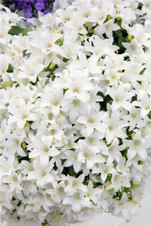 Die Dalmatiner Glockenblume 'White Get Mee' weist eine gute Frosthärte auf.