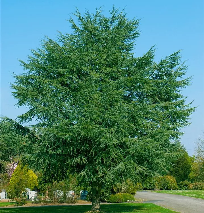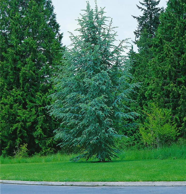 Die Atlaszeder (Cedrus atlantica) ist ein Großbaum, welcher ausladend wächst und gewöhnlich eine Höhe von ca. 25 m und eine Breite von ca. 10 m erreicht. Ihre Blätter haben eine blau-grüne Färbung. Dekorative Zapfen zieren Cedrus atlantica ab September. Dieses Gehölz ist gut frostverträglich. Sie bevorzugt durchlässigen, nährstoffreichen, sandigen, lehmigen Boden in sonniger windgeschützter Lage.