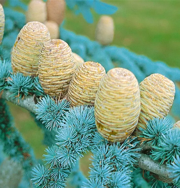 Die Zapfen von Cedrus atlantica erscheinen ab September.
