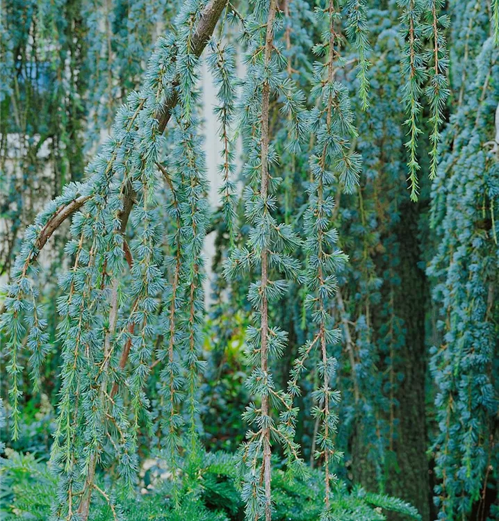 Die Hängende Blauzeder 'Glauca Pendula' ist immergrün. Ihre Nadeln sind blau.