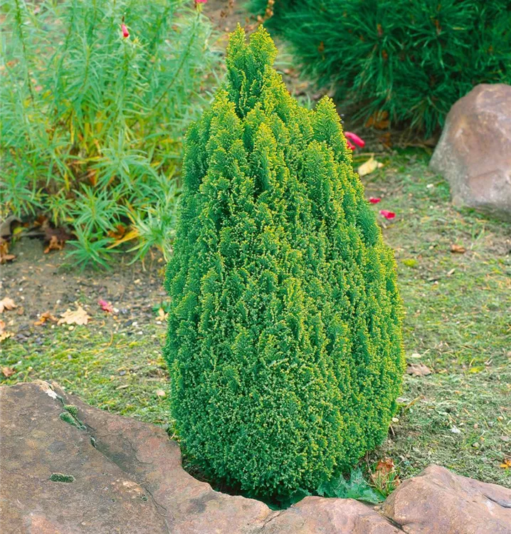 Die Gelbe Kegelzypresse 'Ellwood´s Gold' weist eine gute Frosthärte auf.