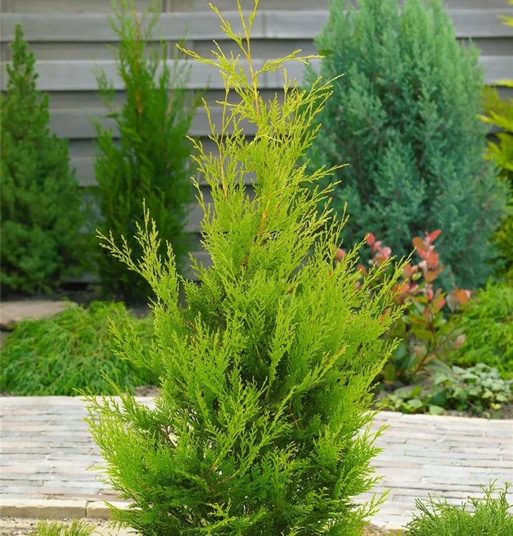 Die Gelbe Baumzypresse 'Castlewellan Gold' weist eine gute Frosthärte auf.
