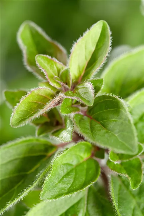 Zum Verzehr geeignet. Die hellgrünen, ganzrandigen Blätter sind eiförmig und überzeugen mit würzigem Geschmack.