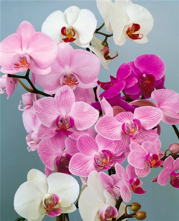 Phalaenopsis 'Royal Sensation'® bringt von Januar bis Dezember dekorative rosa-blaue Blüten hervor.